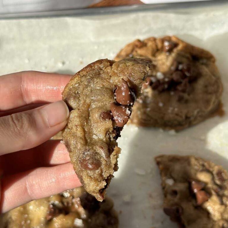 Picture this: a golden, slightly crisp edge that gives way to a soft, chewy center. Now, imagine this cookie studded with rich, melty chocolate chips, with pockets of gooey caramel that surprise you with every bite. The combination of buttery dough, sweet chocolate, and creamy caramel creates an unforgettable satisfying taste. These caramel chocolate chip cookies are finished with a light sprinkle of sea salt, adding a perfect contrast to the sweetness.