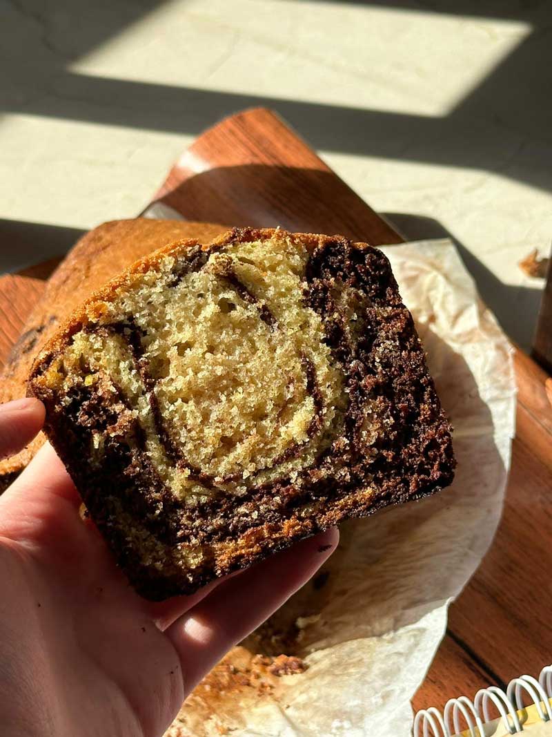 Perfect marble swirls! A very moist texture and a heavenly taste that keeps you coming back for more!