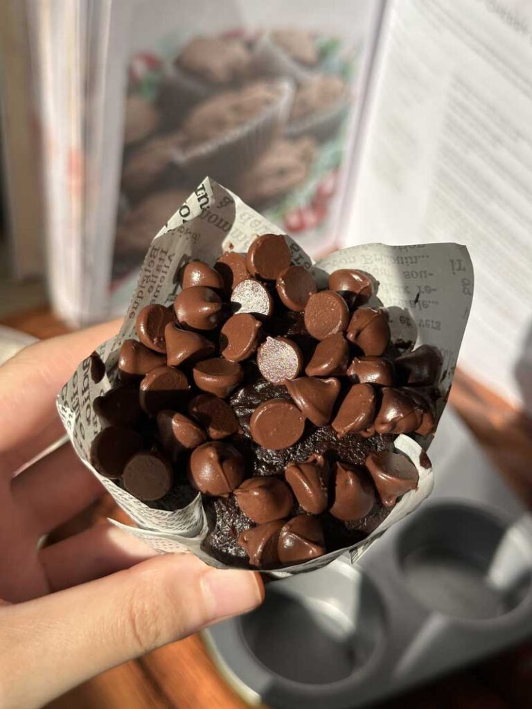 What makes this muffin truly special are the secret ingredients that enhance its flavor and texture. You can achieve a richer, deeper chocolate taste and a wonderfully moist crumb It has a soft, tender texture that holds together well. These ingredients keeps the muffin from drying out and ensures a deep, satisfying chocolate flavor throughout.